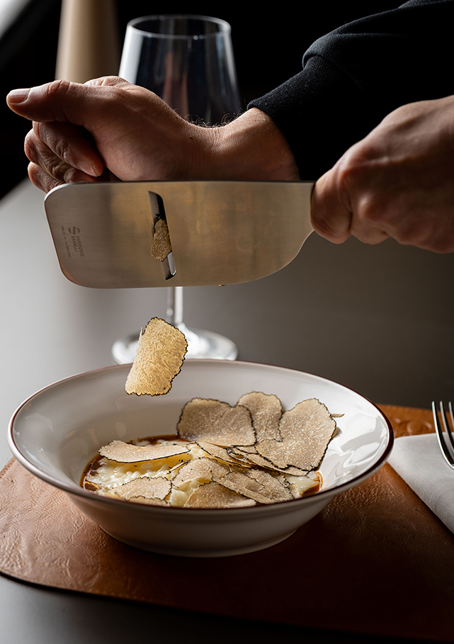 Un'esperienza è autentica e conviviale: piatti che sorprendono per la loro semplicità, con pochi ingredienti selezionati e stagionali, capaci di valorizzare la tradizione e celebrare il tartufo fresco, presente tutto l’anno nel rispetto della sua naturale stagionalità.